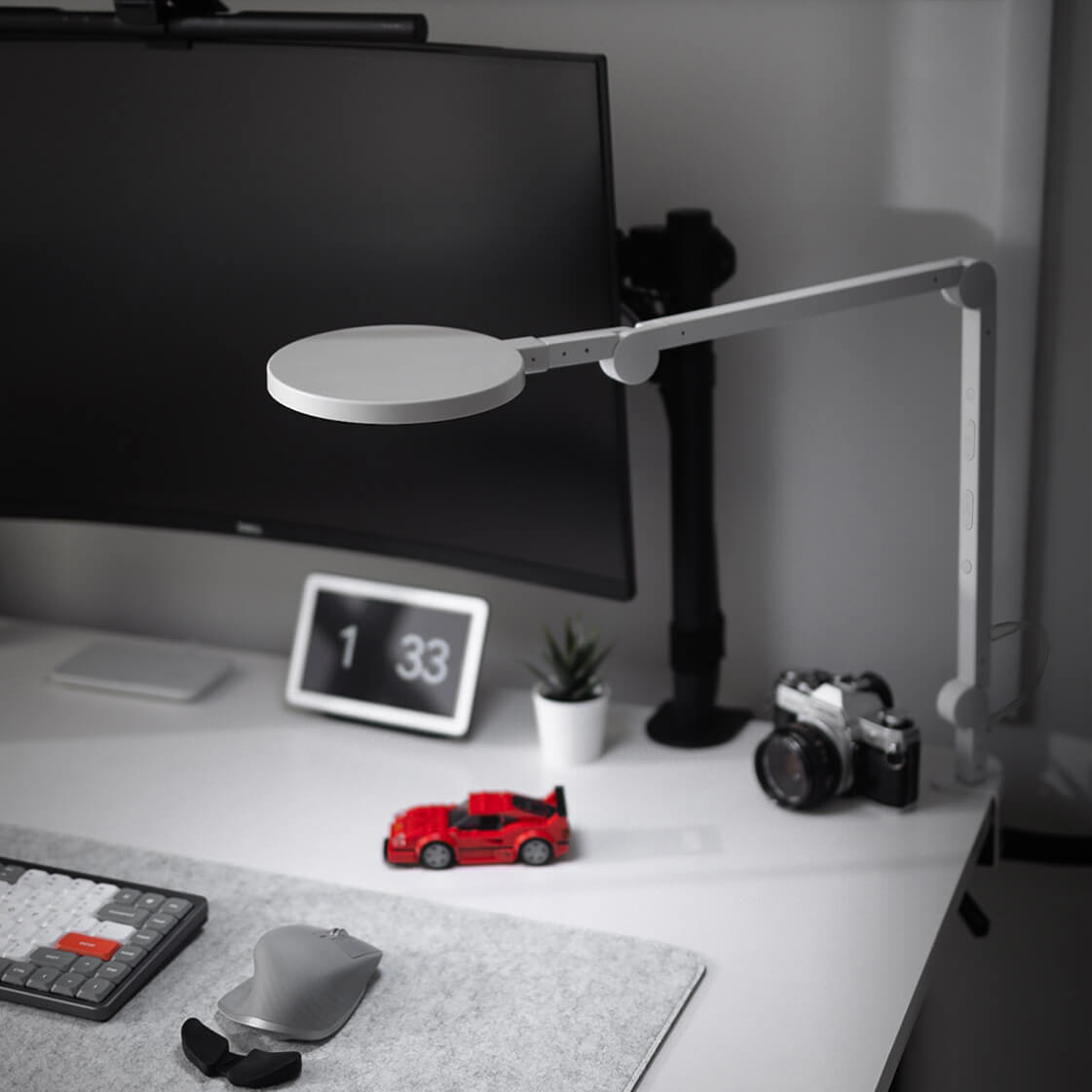 A minimalist yet durable clamp-on desk lamp design that gives you back valuable workspace.